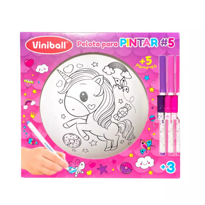 ¡Personaliza Tu Pelota Con Los Colores Que Tu Quieras Y Dale Al Personaje Su Propia Identidad! Viniball Te Trae Un Divertida Pelota En Fondo Blanco Y Con La Silueta De Un Divertido Estampado Para Que Tu Le Pongas El Color Y Sea Como Tu Quieres. Incluye Un Juego De 5 Marcadores Vinifan De Colores: Fucsia, Lila, Rosado, Amarillo Y Azul.