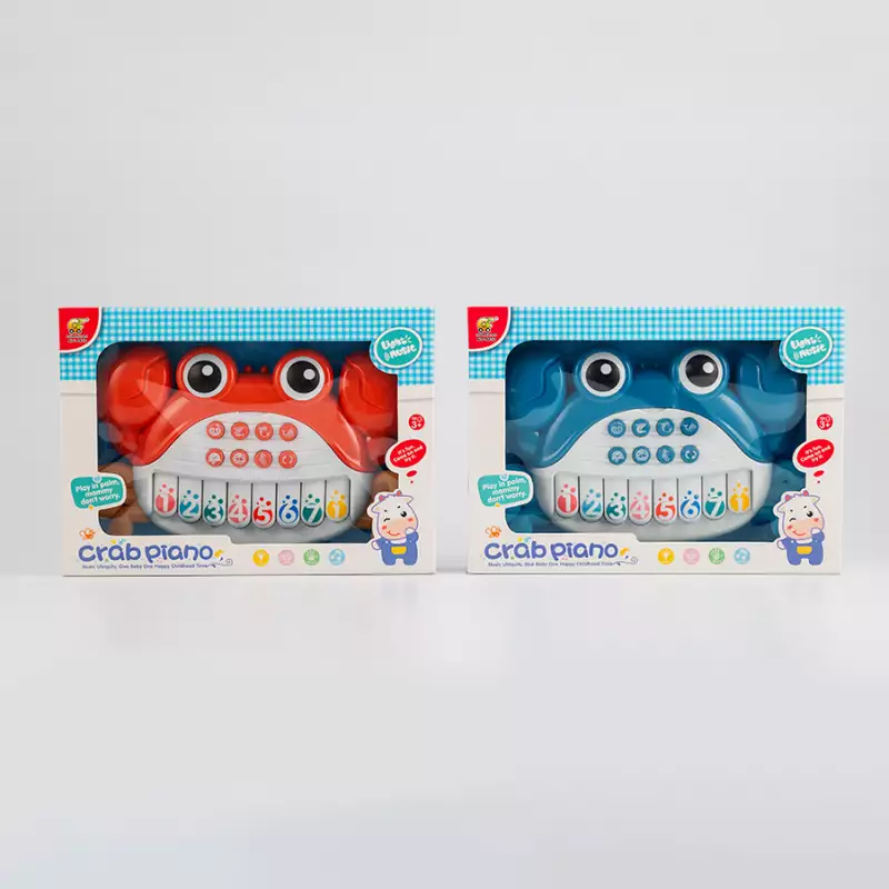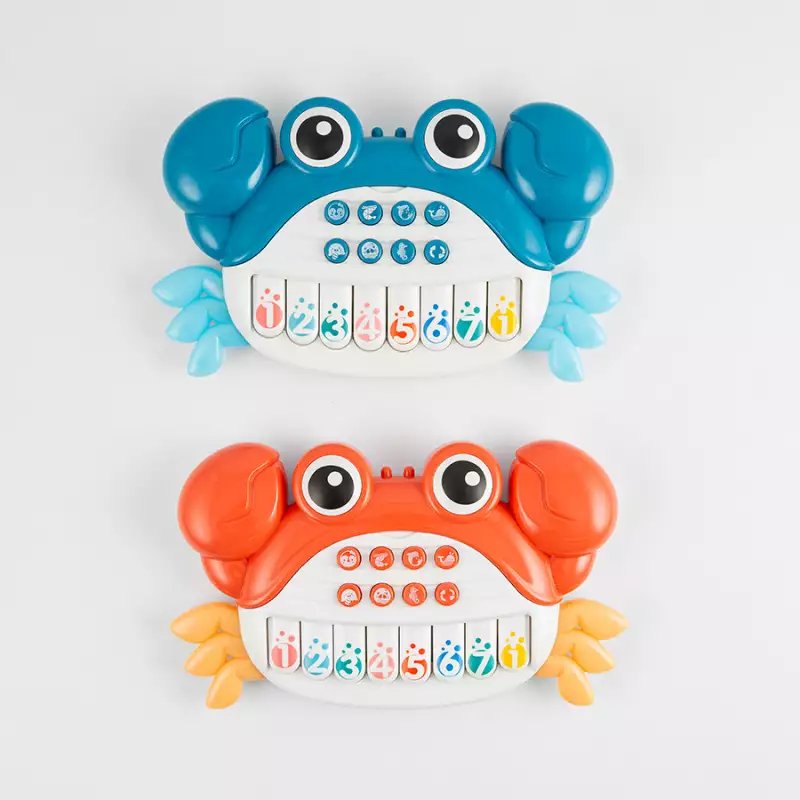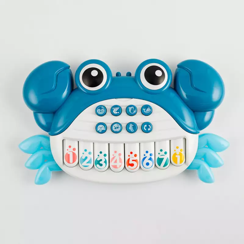 Juguete musical para bebés, diseño encantador con forma de cangrejo, experiencia educativa dual ya que fomenta el aprendizaje temprano y la exploración, aumenta las habilidades motoras finas contribuyendo al desarrollo general mientras se sumerge en las notas musicales, requiere 2 pilas AA, no incluidas, dimensiones del producto 28.5x5.5x20.5cm. Edad recomendad de uso mayor de 3 años.