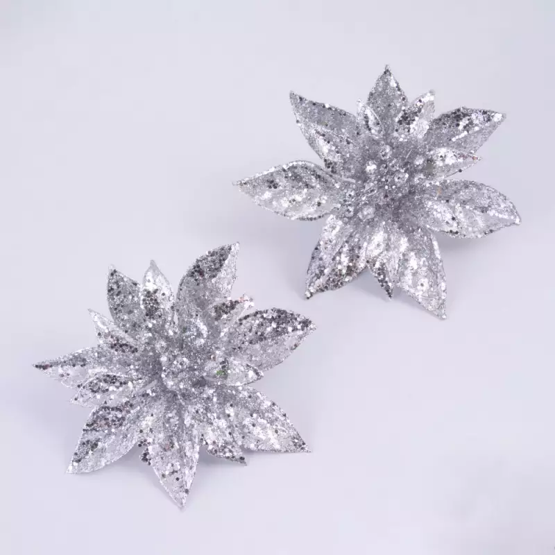 Pick Miro Christmas Poinsettia 2 Ud 25Cm Plateado Plastico 831-M