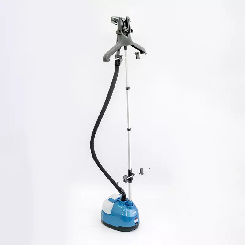 La plancha vertical Conair GS28B combina potencia y funcionalidad en un diseño elegante color azul. Equipada con un tanque de 2.5 litros, ofrece hasta 90 minutos de vapor continuo, ideal para sesiones de planchado intensas.
