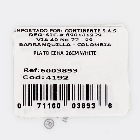 Plato Cena Corelle 6003893 26Cm Blanco Redondo En Vitroceramica