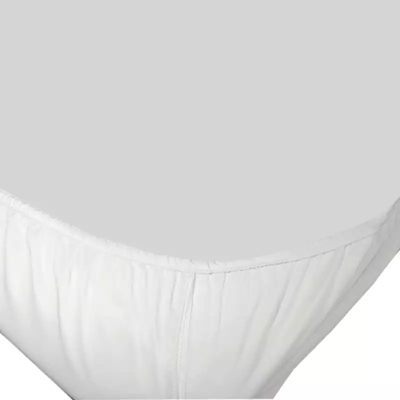 Protector de colchón antialergico, antifluido de color blanco, que prolonga la vida útil del colchón protegiendolo de acaros y hongos, ideal para colchones hasta 50 cm de alto, con resorte en las esquinas y muy fácil de lavar. Perfecto para cama de 1.40 x190x45 cm.