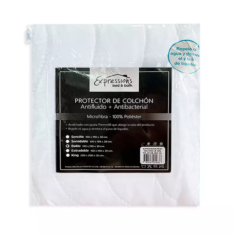 Protector para colchón semidoble acolchado antifluidos, elaborado 100%poliester, antibacterial, antihongos, repele el agua, antiacaros, es suave al tacto, tiene guata thermofill de alta duración, es colorblanco, confortable, cuenta con un diseño moderno y elegante. Dimensiones: 140x190x30cm