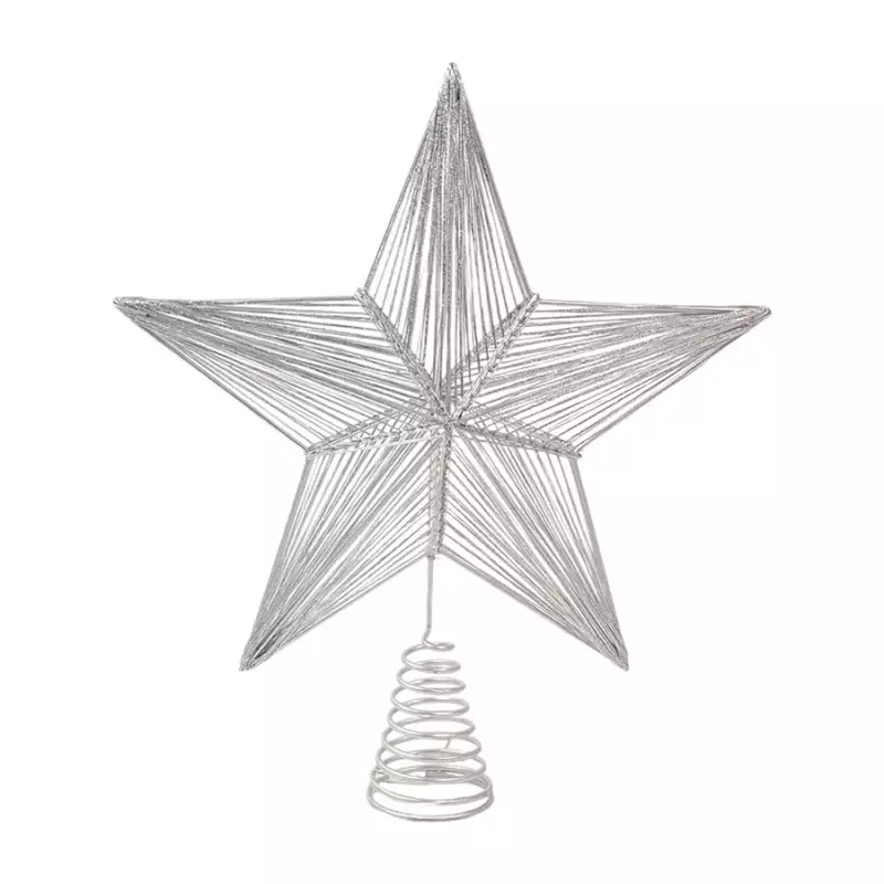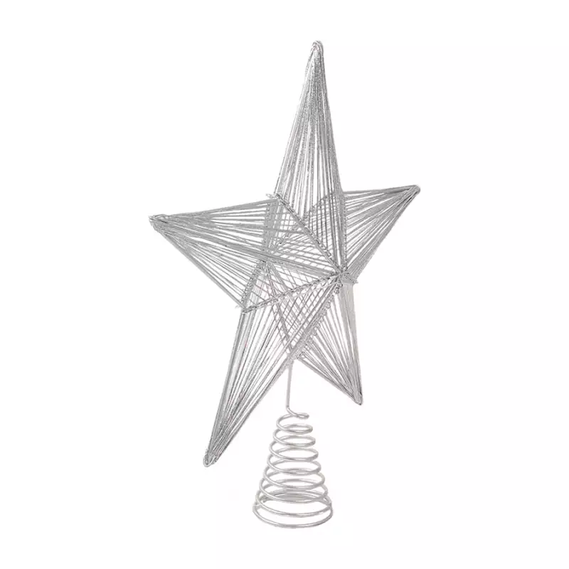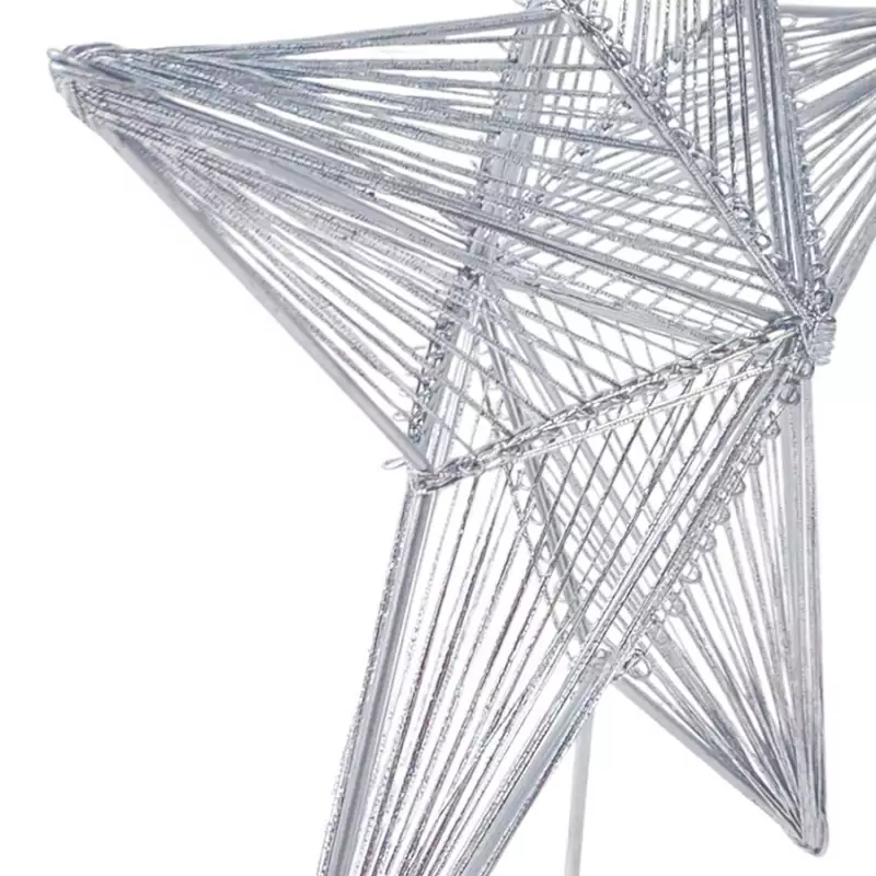 Punta de árbol santini de 27 cm, color plateado, en hierro. Detalle decorativo que corona el árbol con elegancia.