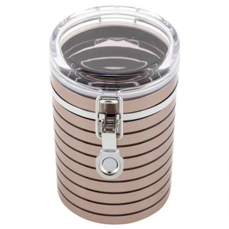 Material: Acrílico y Metal. Recipiente circular. Con tapa en acrílico que permite ver al interior y sello de silicona. Cierre seguro y resistente. Ideal para almacenar dulces, pastas, cereales, granos, frutos secos, galletas y más. Apto para alimentos secos.