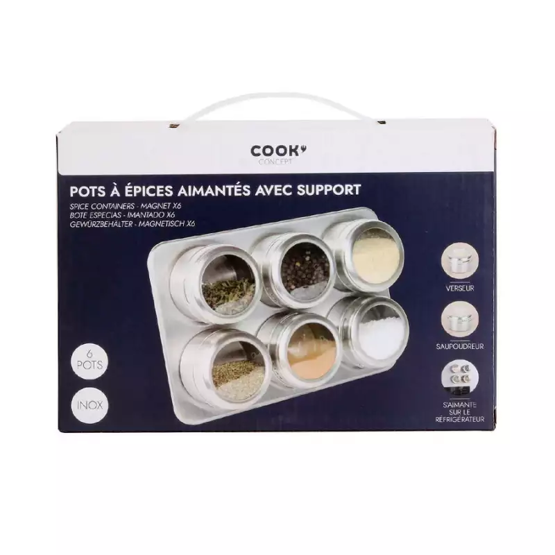 Recipientes Cook Concept Setx6 Para Especias Magneticos Con Soport