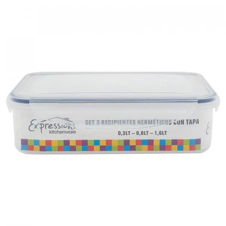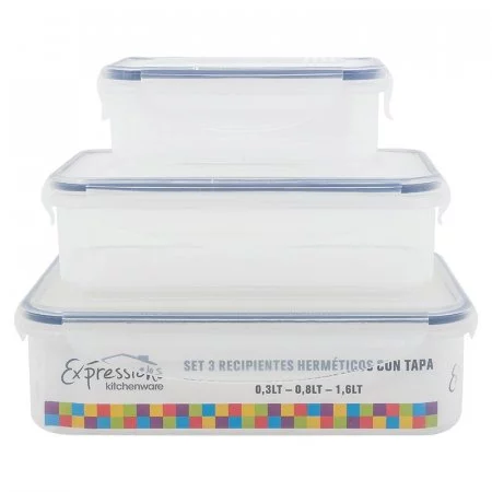 Recipientes Expressions Rectangular 3 Ud Cm Transparente Plastico