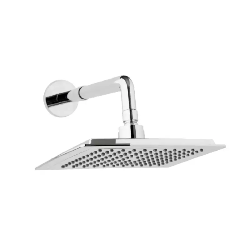 Medidas regadera: 21.5 cm x 21.5 cm • Distancia de pared a regadera: 35 cm • Incluye reductor de caudal para un ahorro de agua • Caída del agua fija tipo lluvia • Incluye tubo con extensión para mayor distancia o para instalación a techo • Bola de rotación metálica para ubicar la salida del agua en diferentes ángulos • Filtro que evita el paso de sedimentos • Cromado resistente al desgaste y la corrosión • Conexión: Rosca macho ½” NPT • Cumplimiento de normas: NTC 1644 • Temperatura de trabajo: 5°C A 71°C • Presión estática máxima de trabajo: 860 kPa (125 psi)