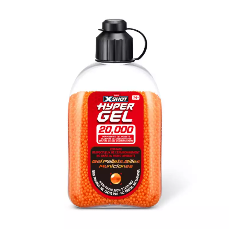 Incluye 20.000 Perdigones Deshidratados Simplemente Agrega Agua Para Hidratar Las Bolitas De Gel Y Entra En Acción. Contenedor De Almacenamiento Vienen En Un Recipiente Resellable. Hidrata Solo Los Perdigones De Gel Que Necesites Y Vuelve A Cerrar El Recipiente Para Más Tarde. Sin Necesidad De Limpieza Los Perdigones Xshot Hyper Gel No Son Tóxicos, Son Ecológicos Y No Manchan. Abastecerse No Te Quedes Sin Perdigones De Gel. Abastécete Y Prepárate Para Recargar Y Ganar Cualquier Batalla. El Paquete Incluye 20.000 Gránulos De Hyper Gel. Advertencias Peligro De Asfixia -Piezas Pequeñas - No Apto Para Niños Menores De 3 Años. Edad Recomendada 14+ Años. Promesa Xshot: Nuestra Misión Es Ofrecer Valor A Nuestros Fans En Todo El Mundo. Nuestra Promesa 'Up Your Game' Es Brindar Una Combinación De Excelencia En El Diseño, Calidad Líder En El Mercado Y Precios Inmejorables.