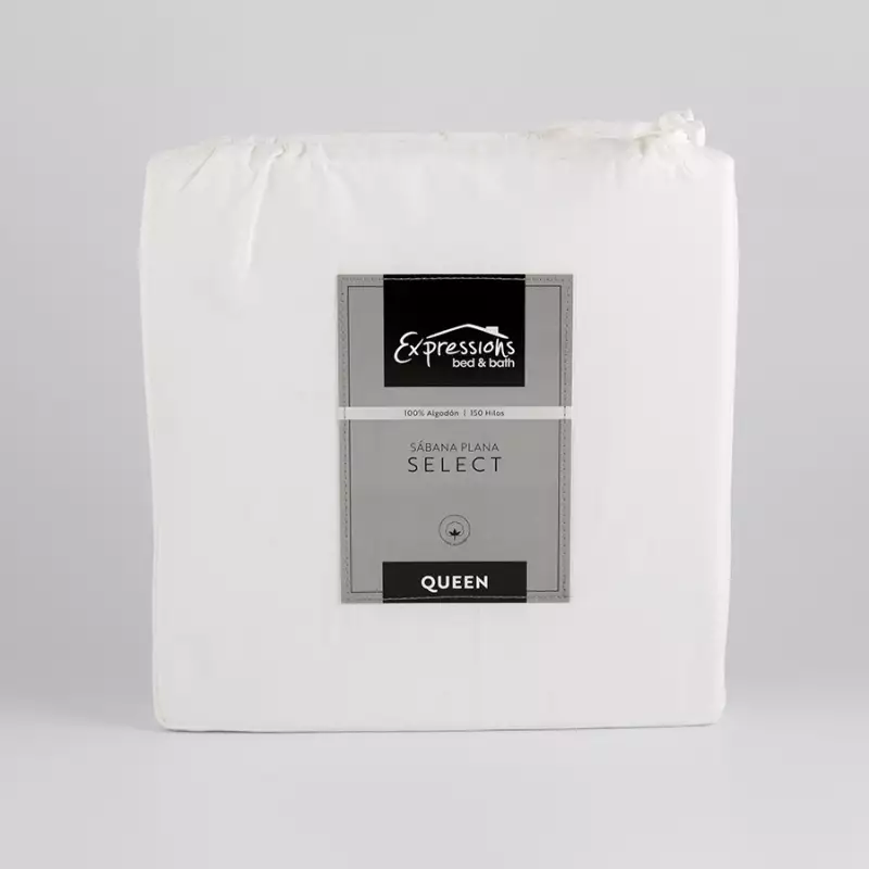 Sabana Plana Expressions 150H Queen Blanco 100% Algodon Sflaqc150