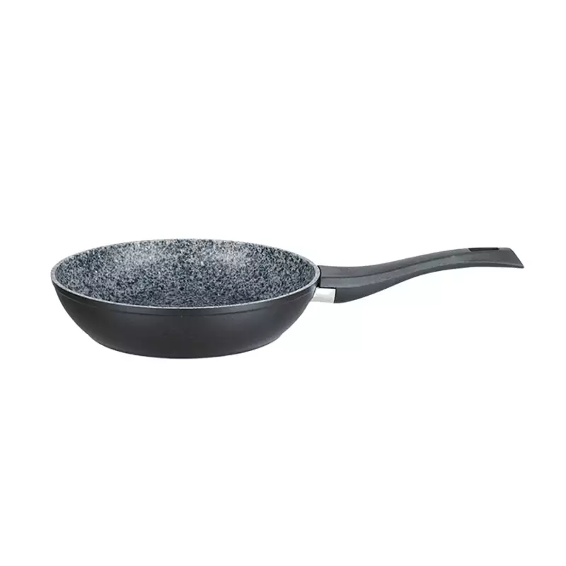 Sartén de 20 cm en aluminio forjado, con 4 mm de espesor en el aro y fondo para una excelente distribución del calor. Cuenta con 4 capas de recubrimiento reforzado para una superficie antiadherente duradera. Mango de baquelita resistente al calor.