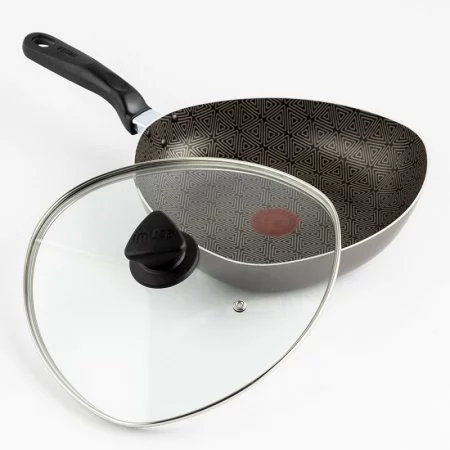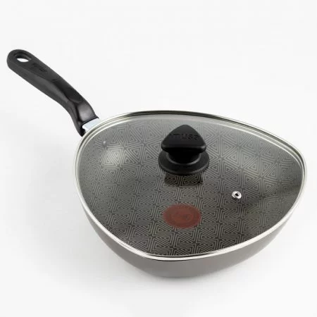 Sarten Triangular 30Cm En Aluminio Antiadherente Con Tapa De Vidrio Con Base Difusora: Especial Para Distribuir De Manera Uniforme El Calor. Y Termo Señal: La Termo Señal Cambia De Color E Indica Que Esta Listo Para Empezar A Cocinar Así Conservas Mejor La Textura Y Nutrientes De Los Alimentos Antiadherente Triforce: Hasta 3 Veces Mas Durable