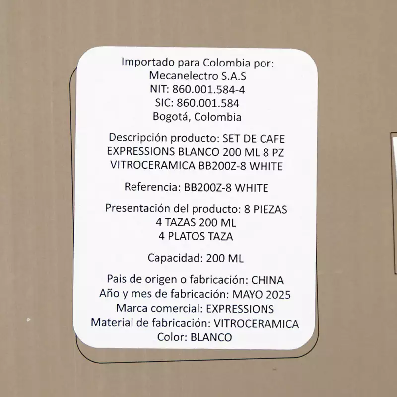 Set Cafe Expressions Blanco 200 Ml 8 Pz Vidrio Opal Bb200Z-8 White