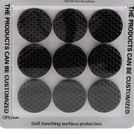 Set de dieciocho fieltros autoadhesivos color negro, Forma redonda, Protegen las superficies delicadas, Evitan el desgaste por rayado y la abolladura de muebles, Se adhieren permanentemente a la madera laminada de caucho, cerámica, metal y otras superficies, Tienen adherencia con la operación conveniente a prueba de golpes insonorización desgaste, encorvamiento, Prolongan la vida util de los muebles, Elaborados en China.