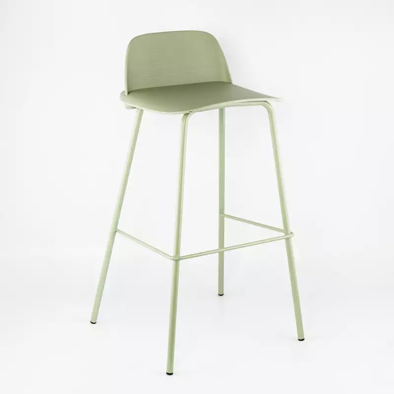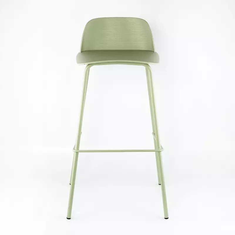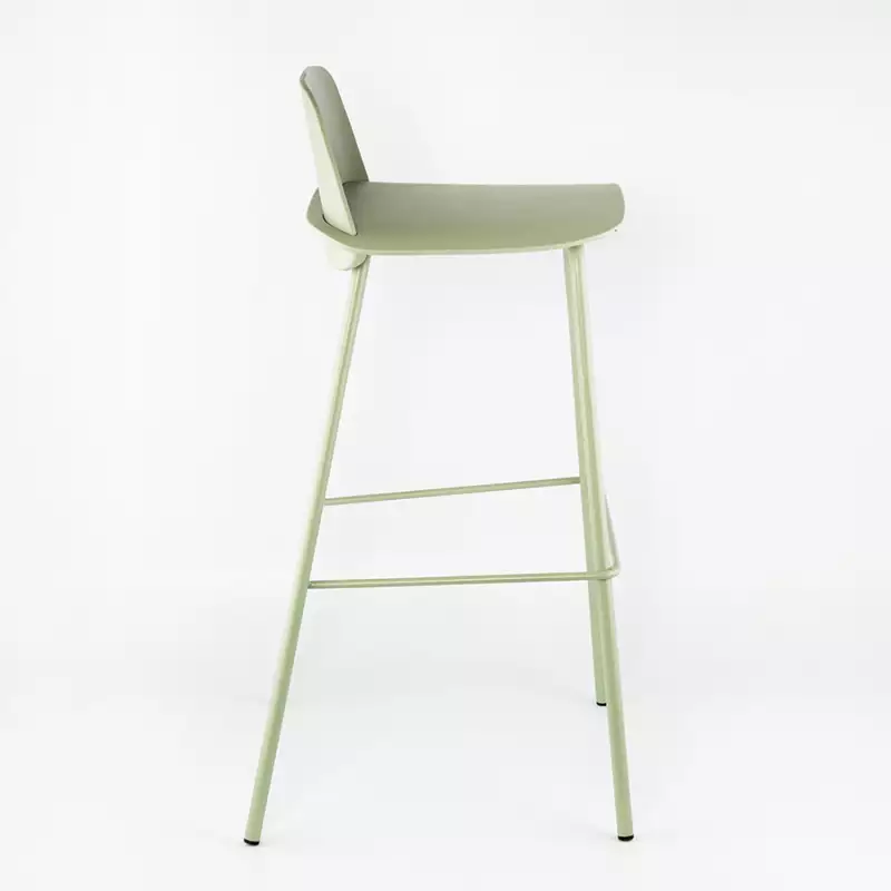 Silla bar con espaldar moderno MC230420-8 Marca: Expressions Furniture Materiales sillin/espaldar: Polipropileno Materiales patas: Metal El diseño ergonómico de altura perfecta y asiento curvo apoya bien la espalda del usuario al sentarse y facilita las conversaciones. Color: Verde pastel