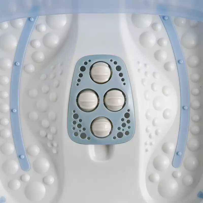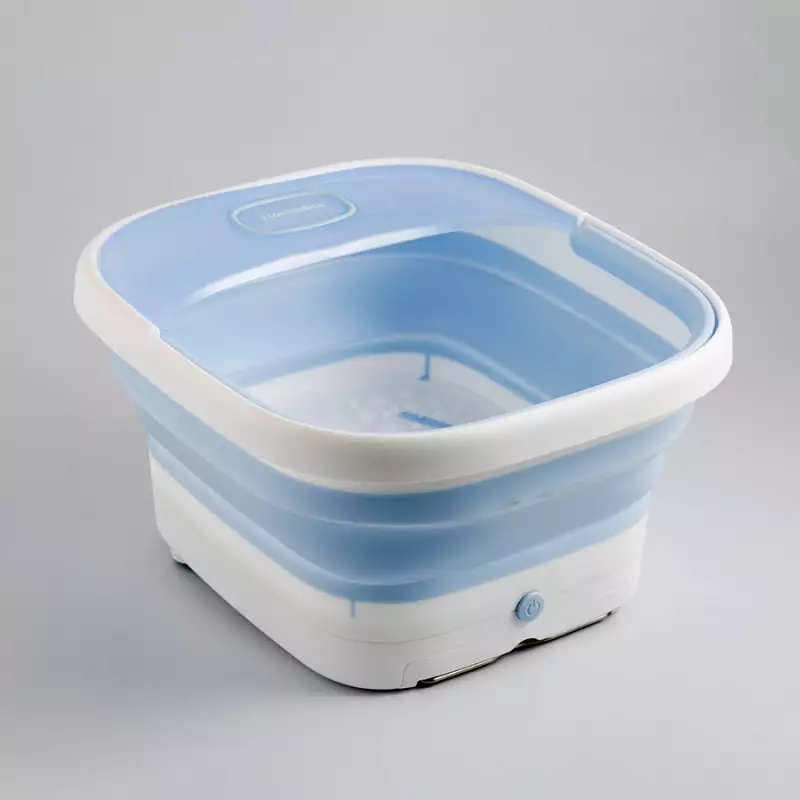 Spa de pies Essentials realiza burbujas vigorizantes, mantiene calor, relaja y renueva sus pies, posee caracteristicas como sistema de bloqueo de seguridad para evitar que se pliegue cuando esta en uso, seguro para usar con sal de baño, plantilla ergonomica que frota tus pies hacia aelanta y hacia atras a lo largo de los nodos elevados y los nodos centrales rodantes para un masaje.