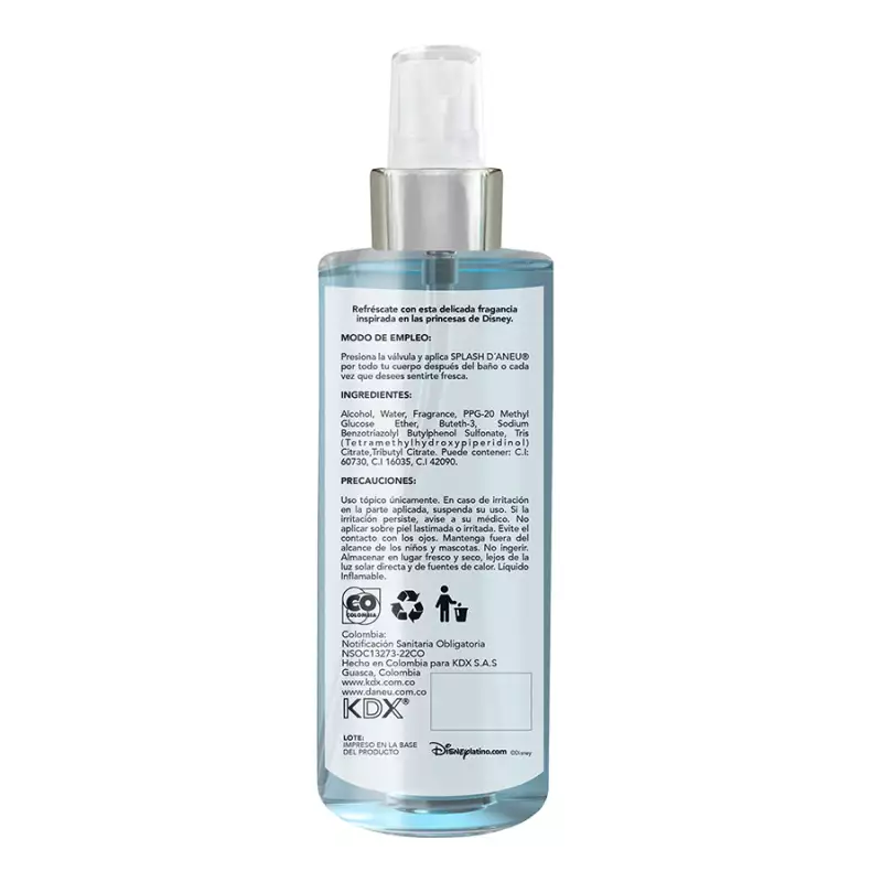 Splash Elsa, Es delicada con la piel ya que contiene Extracto de Avena y Vitamina E. Aplica pequeñas cantidades oprimiendo el spray a una distancia de 10 cm de la parte del cuerpo que desees perfumar. Recomendamos aplicar en el cuello, detrés de las orejas, en la parte interna de los codos y las muñecas de la niña, para que la fragancia perdure por més tiempo. También puede aplicarse en la ropa.