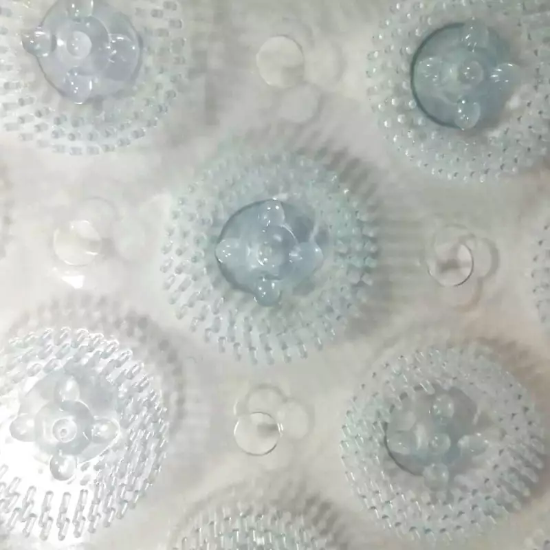 Tapete Expressions Antideslizante 3D Cu 53x53 cm Transparente, fabricado en PVC. Este tapete cuenta con un diseño antideslizante que incluye cientos de ventosas, asegurando una adherencia firme al piso y evitando caídas