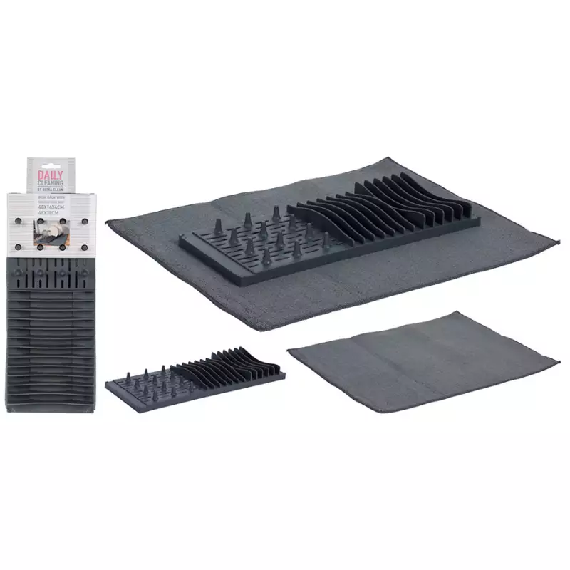Tapete ultra clean escurridor 48x38cm en microfibra 101000540. Escurridor de platos con secadero de microfibra, tamaño de la rejilla 40x16x4cm, peso 300 gamos, en color gris.