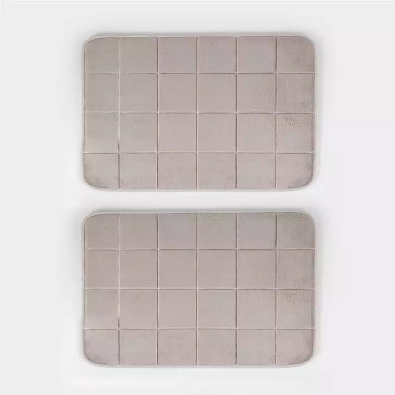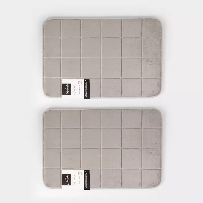 Set de 2 tapetes para baño, fabricados en poliéster resistente y de tacto suave. Cada tapete mide 60x40 cm, ideal para brindar comodidad y estilo en el baño. Su color gris neutro combina fácilmente con cualquier decoración y cuenta con base antideslizante para mayor seguridad.