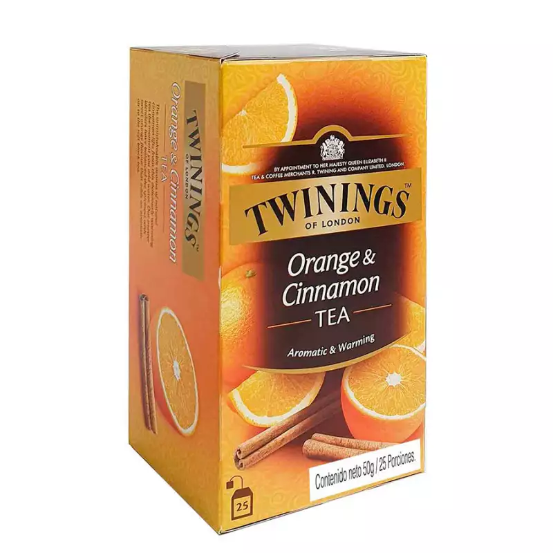 Delicioso té negro saborizado naranja y canela Twinings. Importado de Inglaterra.