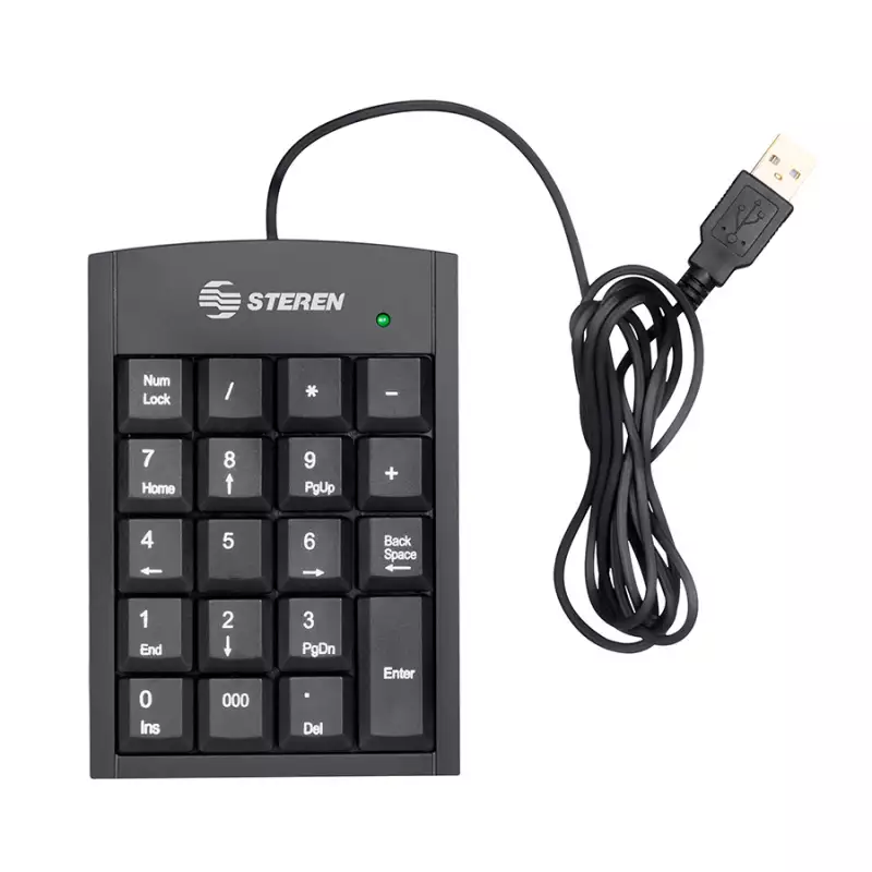 Teclado numérico extra plano, con conector USB. Tiene sistema de membrana, con diseño ergonómico y ultra delgado. Ideal para equipos portátiles como Laptops o Notebooks con entradas USB, en las que se requiera efectuar con frecuencia operaciones numéricas. 19 teclasAlimentación: 5 Vcc (a través del puerto USB)Dimensiones: 9 cm de frente x 13 cm de alto x 1 cm de anchoPeso: 130 g