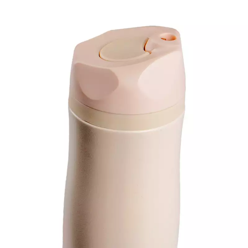 Botella Color Crema Blend. 360 ml, 21,5 X 7,6 X 7,6. en acero inoxidable, Libre de BPA, aprueba de derrames, viene con aislamiento al vacío de doble pared para preservar la temperatura y frescura por más tiempo. En su tapa cuenta con un seguro accionado por clic que permite mantener tus bebidas seguras y a temperatura adecuada. Además, su increíble diseño de boquilla permite beber con facilidad y comodidad. Mantiene el calor hasta 6 horas. Fabricado con materiales seguros para tu salud y respetuosos con el medio ambiente.