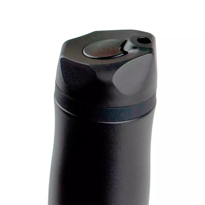 Botella Color Negro Blend. 360 ml, 21,5 X 7,6 X 7,6. en acero inoxidable, Libre de BPA, aprueba de derrames, viene con aislamiento al vacío de doble pared para preservar la temperatura y frescura por más tiempo. En su tapa cuenta con un seguro accionado por clic que permite mantener tus bebidas seguras y a temperatura adecuada. Además, su increíble diseño de boquilla permite beber con facilidad y comodidad. Mantiene el calor hasta 6 horas. Fabricado con materiales seguros para tu salud y respetuosos con el medio ambiente.