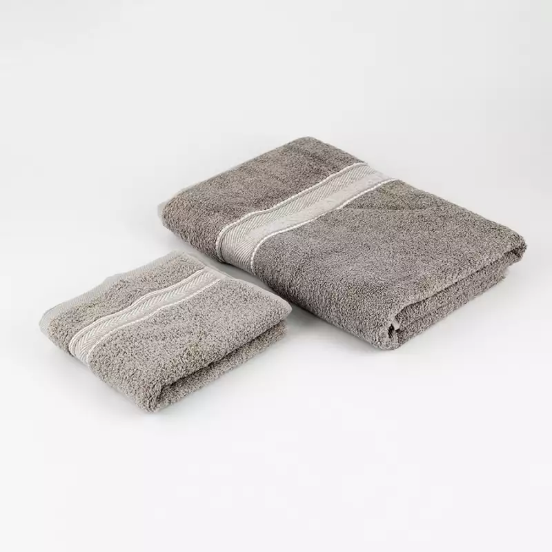 toalla de algodón, disponible en tamaños 40 cm x 70 cm y 70 cm x 140 cm, color gris, peso 500 gr/m², ideal para suavidad y absorción