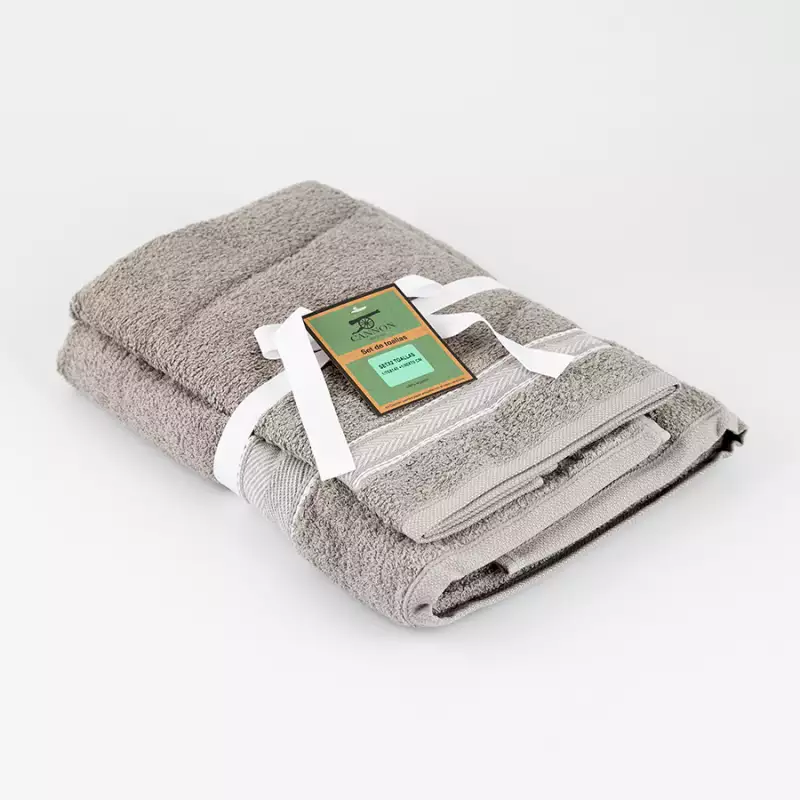 Inicio > TEXTIL HABITACIÓN BAÑO Y ACCESORIOS > Textiles y accesorios baño > Toallas > Toalla Cannon Benny 70X140Cm 40X70Cm Gris 500 Gr 2 Ud Algodon