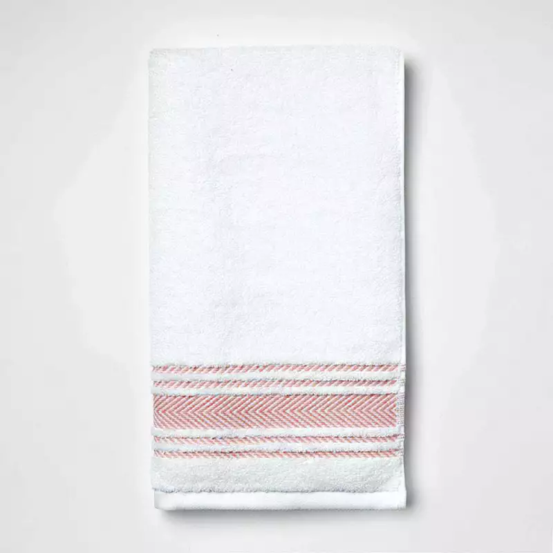 Toalla para manos, 550gr, color blanco con borde de color, tela suave al tacto. Dimensiones: 40x70cm