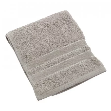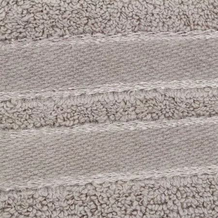 Toalla para manos, 500gr, elaborada 100%algodón, color gris, tiene diseño con lineas en uno de los laterales , es suave al tacto, practica, moderna y absorbente. Dimensiones: 40x70cm
