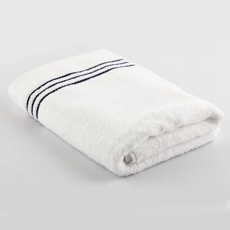 Toalla para cuerpo, 550gr, color blanco con raya azul, su material de elaboracion te brinda la comodidad y la absorcion necesaria pára tu secado. Dimensiones: 70x140cm