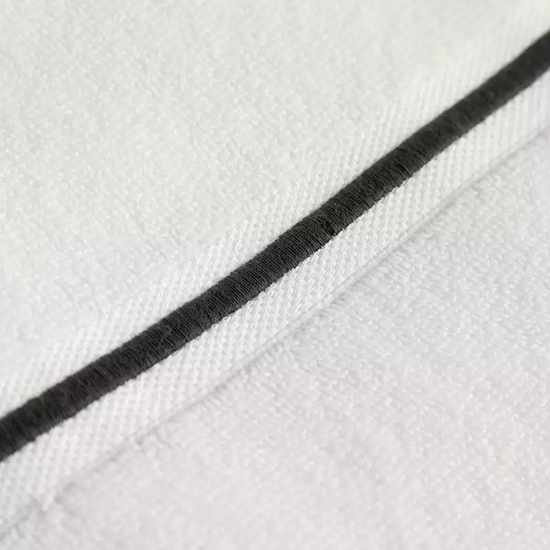 toalla de 70 cm x 140 cm, color blanco, peso 600 gr/m², material 100% algodón, ideal para suavidad y absorción superior.