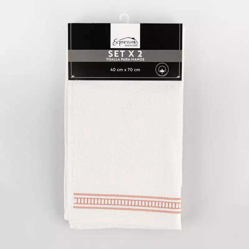 Setx2 toallas de manos 100% algodón Expressions incluye: 1 toalla blanca + 1 toalla rosa dimensión 40x70cm