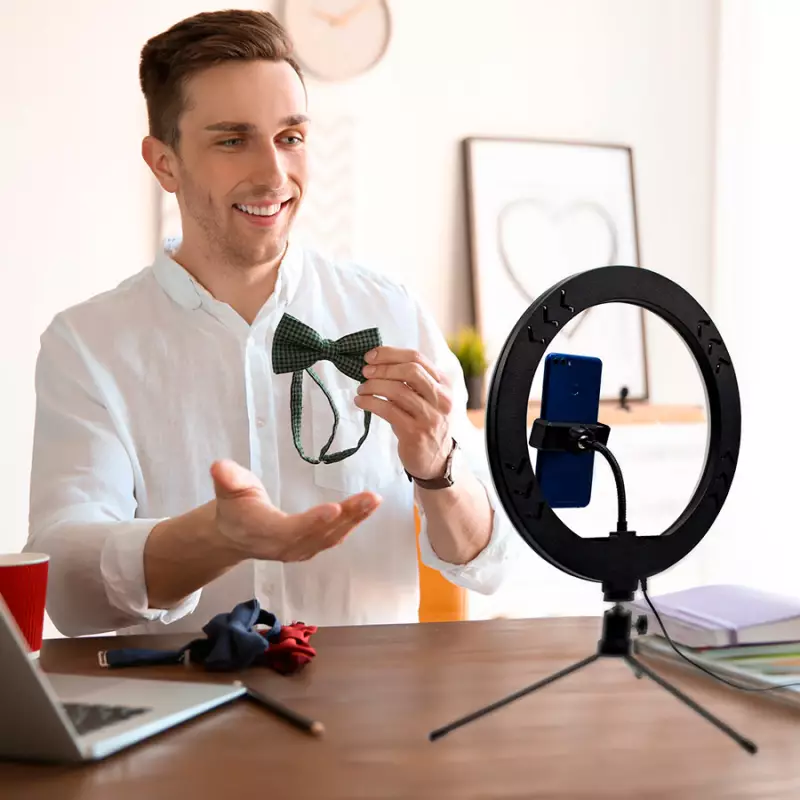 Incluye trípode para escritorio y base para smartphone,que permite hacer un control de intensidad y temperatura de luz Ideal para la toma de fotos o grabación de videos.ademas de ello facil de transportar.