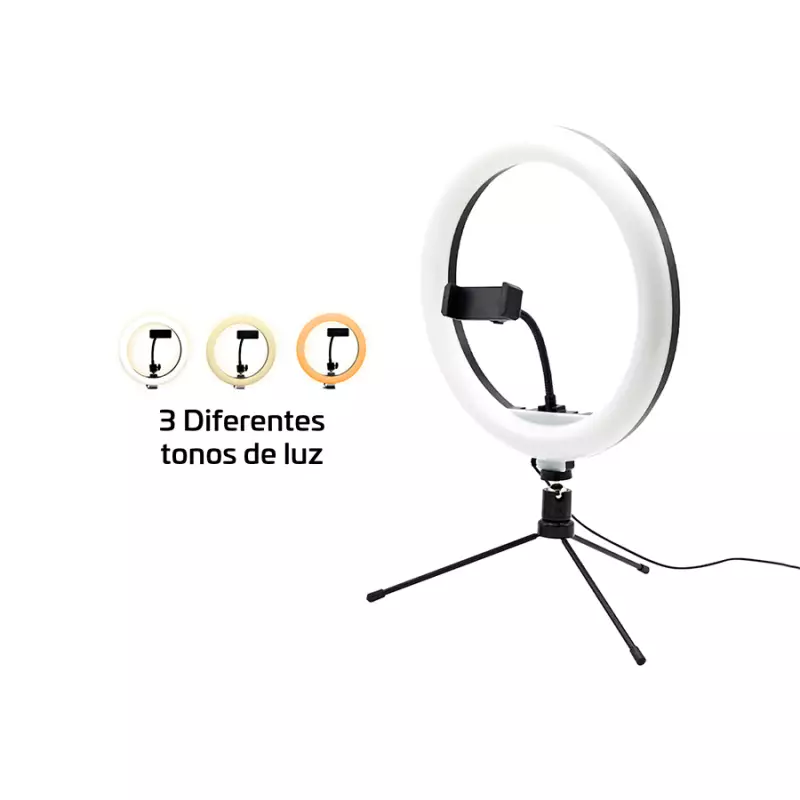 Inicio > COMPLEMENTOS HOGAR > Electrónica y telefonía > Equipos de Audio y Accesorios > Trípode de Escritprio con Aro de Luz 12" y control