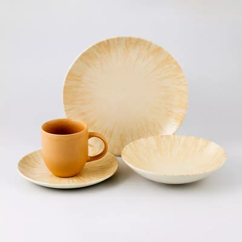 Inspirada en la calidez del sol y la serenidad de la arena, la Vajilla Nyssa combina texturas sutiles con un diseño armonioso que evoca la tranquilidad de la costa. Sus detalles en relieve capturan la esencia de los rayos del sol reflejándose sobre la arena, mientras que sus tonos neutros y elegantes la convierten en una pieza versátil que se adapta a cualquier mesa.