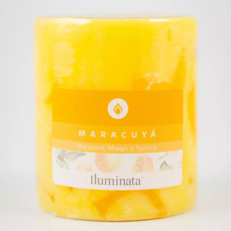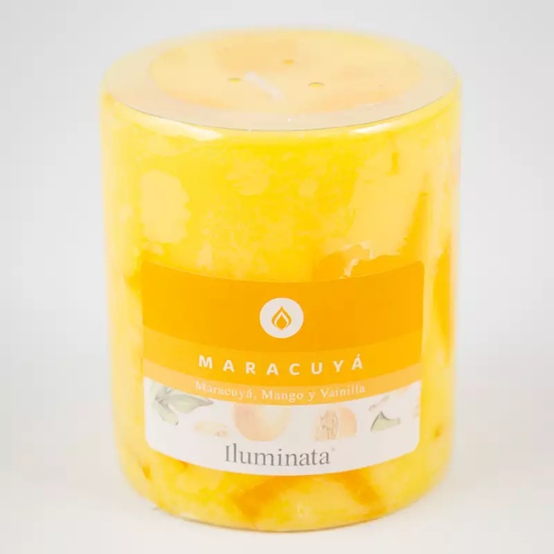 Vela Pilar 33 con aroma logrado de esencias naturales Aroma: Maracuya Recomendable usar sobre una base,evitar corrientes de aire. Esta vela no ahuma, no chorrea.