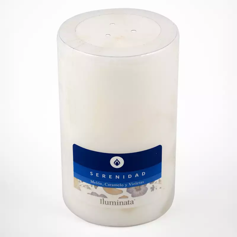 Vela Pilar 34 con aroma logrado de esencias naturales Aroma: Serenidad Recomendable usar sobre una base,evitar corrientes de aire. Esta vela no ahuma, no chorrea.