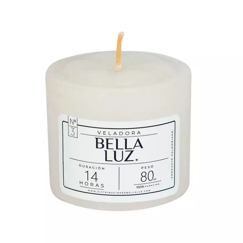 Veladora Bella Luz N3 5X5Cm Blanco 90 Gr Parafina N3