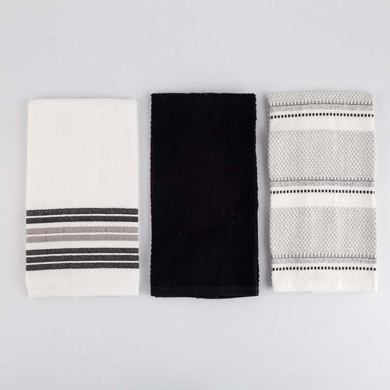 Toallas para cocina 3 unidades, fabricado en algodon, colores surtidos. Los productos marcados como 'PRODUCTO SURTIDO' pueden no ser idénticos a los que aparecen publicados en las imágenes. Las imágenes son ilustrativas. Al comprar un producto identificado como producto surtido, aceptas que podrás recibir un producto con características y atributos tangibles diferentes a los que aparecen en las imágenes del sitio o la publicidad. Los productos surtidos mantendrán las propiedades físicas, químicas y técnicas necesarias para su funcionamiento y uso de acuerdo a su naturaleza.