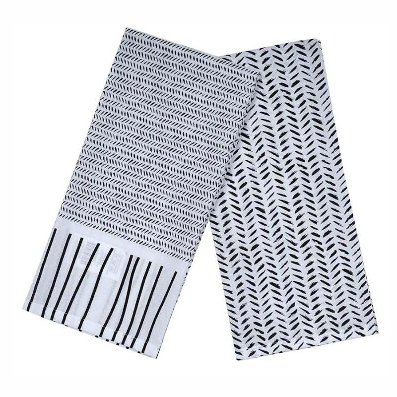 Paños de cocina 2 unidades. 100% algodón, estampado color blanco y negro. Dimensiones: 45x60cm