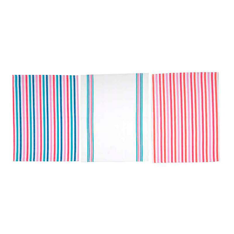 Paños de cocina, 3 unidades, diseño rayas varios colores, elaborado en algodón. Dimesiones:45x60cm