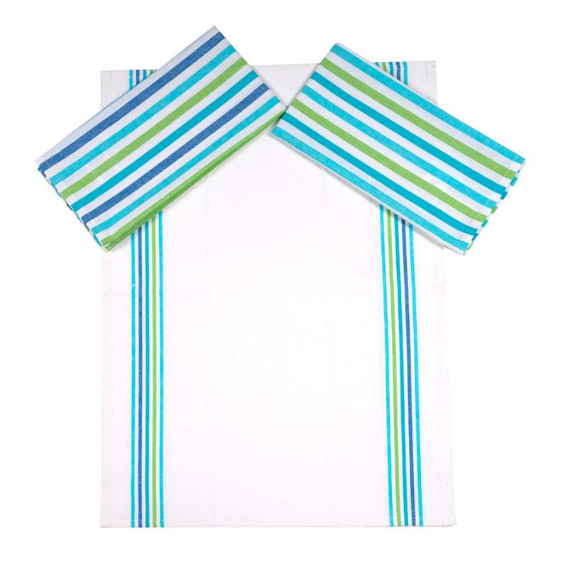 Paños de cocina, 3 unidades, diseño rayas varios colores, elaborado en algodón. Dimesiones:45x60cm