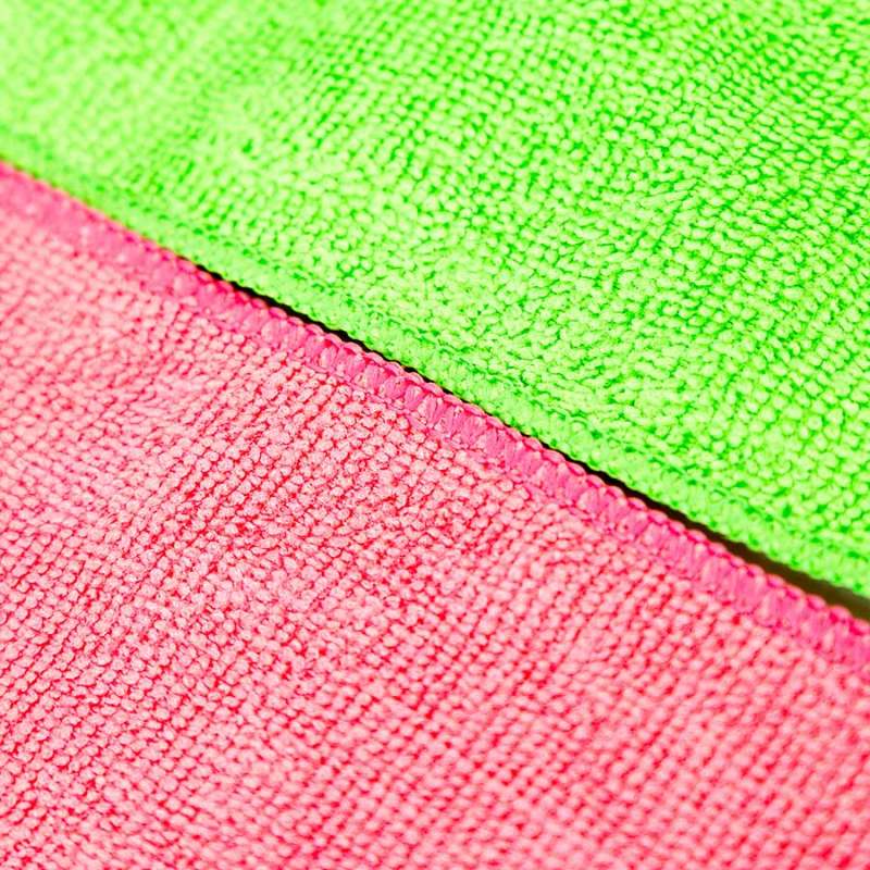 Set de 2 paños de microfibra en colores variados, ideales para diferentes áreas del hogar sin mezclar usos.