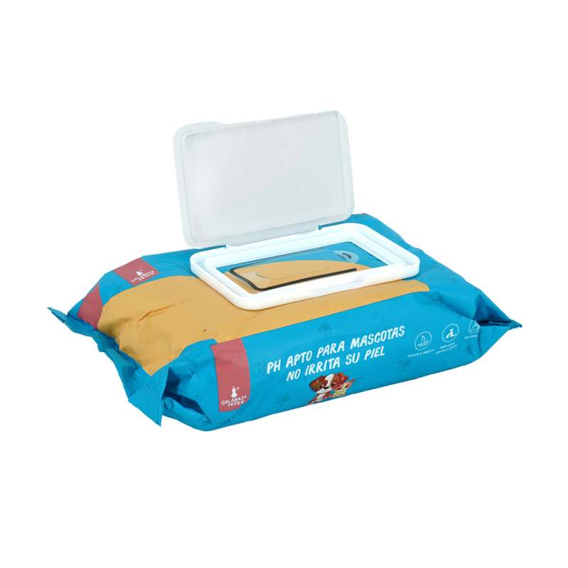 Paños húmedos para mascotas, toallitas para higiene, tamaño 22 cm, peso total ~480 g, presentación de 80 unidades. Útiles para limpieza de patas, hocico, orejas, aseo rápido. Fórmula suave, ideal para uso frecuente, posiblemente con fragancia suave o sin olor fuerte.