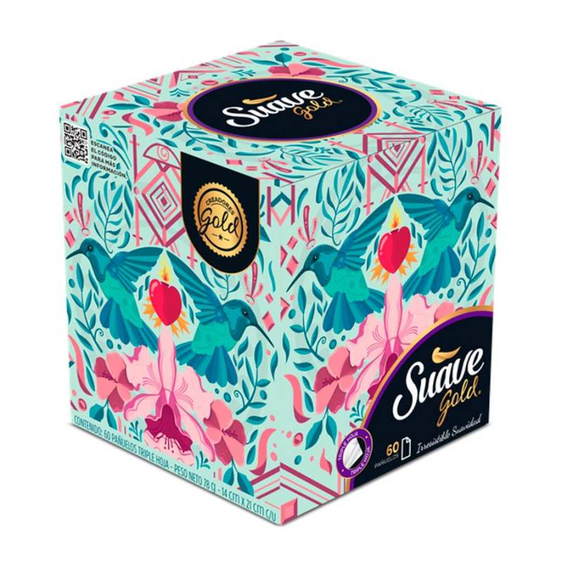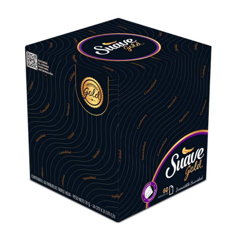 Set de sesenta pañuelos faciales elaborados en papel. Este está hecho en material 100% natural y de alta calidad. Son completamente absorbentes de triple hoja, suaves al tacto y no lastian la piel. Su presentación es en caja tipo cubo que sirve como dispensador.