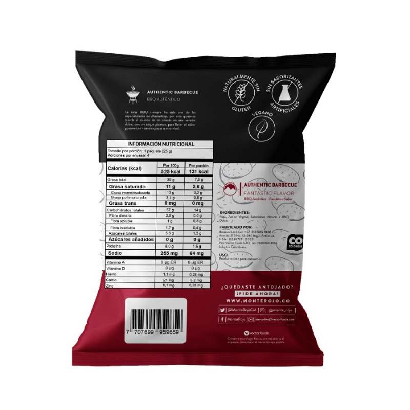 chips crocantes de papas gruesas y rústicas con un sabor a BBQ de notas dulces, sin duda un sabor único. Sin gluten, sin colesterol y sin grasas trans.
