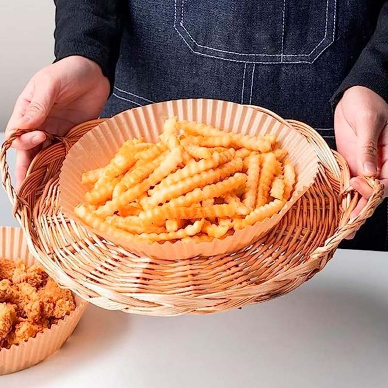 Papel canastilla Air Fryer Expressions • Contenido: 100 Unidades.• Dimensiones: 20 cm x 4.5 cm.• Temperatura: Resiste una temperatura superior a 230 °C.• Antiadherente y Antiderrames.• Resistente al Agua y al Aceite. Apto Para: Air Fryer. Microondas. Horno. Sartén Facilita la limpieza de tu olla Air Fryer y aumenta la durabilidad de aparatos electrónicos.